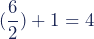 \begin{equation*}(\dfrac{6}{2})+1=4\end{equation*}