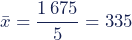 \begin{equation*}\bar{x}=\dfrac{1\,675}{5}=335\end{equation*}